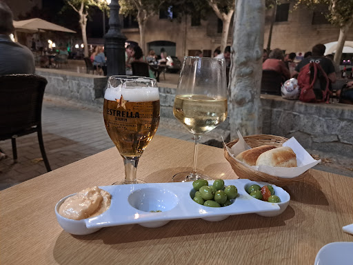 Großartige Bedienung! Sehr professionell, umsichtig und super freundlich. Unsere sensationelle Vorspeise: ein Salat mit Burata: Kühle, superfeine Burata auf gemischtem Blattsalat mit sonnengereiften, getrockneten Tomaten und einem süß-scharfen Mango-Chutney-Dressing. Eine wahre Geschmacks-Explosion. Unbedingt probieren! Zweifelsfrei die beste Burata, die wir bisher gegessen haben. Zweite Vorspeise: Frittierte Baby-Kalamare auf Salat-Bett mit Zitrone. Ein Gedicht! Zum Hauptgang bestellten wir hausgemachte Ravioli mit einer Ricottafüllung und gerösteten Pinienkernen. Hervorragend im Geschmack und Ultra-sättigend. Ein weiteres Highlight des Abends: Die Life-Musik und die Tanzperformance von Jung und Alt auf dem Marktplatz direkt neben der Restaurant-Terasse. Wie viele andere Gäste mischen wir uns nach unserem exquisiten Dinner mit frischer Energie unter die tanzenden Spanier und Spanierinnen und tanzen glücklich in eine hoffentlich noch sehr lange dauernde heiße...