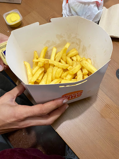Read moreLa limpieza de las instalaciones siempre deja mucho que desear, y la dedicación a la hora de hacer los pedidos también. Para mi todo se resume a que mantengan a los empleados satisfechos y sin explotar. Con más gente en sala se reduciría la basura, y con más gente en cocina, si se pide un cubo de 5€ de patatas fritas, que al menos llegue el cubo de patatas fritas lleno ( no prácticamente vacío como podréis observar en la imagen ) y con sal, NUNCA llevan sal, no digo que se le eche una exageración, pero NUNCA llevan nada de sal. Si no hubiese prisa en hacer los pedidos ( prisa = pocas manos para trabajar = una persona haciendo lo que tendrían que hacer 3 por ejemplo ) a lo mejor habrían echado las patatas que corresponden al cubo que he pagado. La verdad que para lo que cuesta, el producto tendría que ser mil veces mejor. Pagué 20€ por una cena que ni 5€ hubiese pagado si hubiese visto las condiciones en las que me lo iban...
