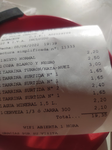 Read more-La horchatería está bien en líneas generales. -Buen sitio; amplio, cómodo, espacioso y limpio. -Ofrecen unos buenísimos helados, entre otras muchas cosas. -El personal de la horchatería suele dispensar una buena atención, un buen servicio y un buen trato a sus clientes. -Cuentan con dos terrazas exteriores. -Disponen de una pequeña zona de juegos infantil. -Disponen de unos buenos aseos públicos propios. -No disponen de parking propio, aunque en las inmediaciones del local existen muchas plazas de aparcemiento. -En definitiva, un 8 sobre 10 en relación...