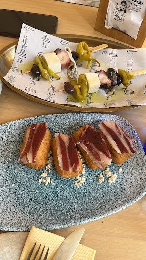 Read moreLugar pequeñito pero con terraza en unos de los lugares más emblemáticos de Albacete. He ido a almorzar su famosa tortilla pero a las 11 ya no había... Mejor reservarla nos han dicho. No obstante, me han sacado un montadito de ternera con cebolla caramelizada y un zumo natural que me han estado buenísimos. Buen precio, servicio normal para el volumen de mesas que tenía que atender. Trato regular supongo que por la misma razón. En cuanto al baño, no adaptado para personas en sillas de ruedas o carritos debido a las estrecheces del lugar. Actualizacion: al fin pude probar su famosa tortilla después de tener que encargarla el día de antes. Quedé bastante depcionada, el servicio seguía siendo lento por la cantidad de gente que va a almorzar y la tortilla en sí muy insipida, lo único especial es que esta poco cuajada pero de sabor nada del otro mundo. No creo que vuelva...
