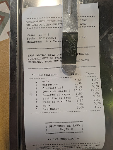 Fui a comer con mi pareja el sabado con buenas expectativas al ver un reel de instagram y que decepcion. Pedimos croquetas, ensaladilla, las gyozas y un mollete de pollo como entrantes y el solomillo para terminar. Nos traen las croquetas y la ensaladilla y bien, al rato largo aparecen con las gyozas que nos las ponen en la mesa y me preguntan si las había pedido, le digo que si y correcto, aparece a los dos minutos y se llevan el plato que dice que es de otra mesa, una ridiculez pero bueno. Me traen el solomillo, un trocillo enano bañado en salsa barbacoa y con patatas de freidora. Después de una hora esperando les pido que si iban a sacar las gyozas y el mollete, entiendo por la camarera que ni estaban pedidos o se los habían servido a otra mesa, al final lo traen ya aburridos. Pedimos la oblea a compartir de postre y bien, estaba buena. Conclusión que dos horas y viente para comer dos personas cuatro tapas que muy regular con una botella de vino normalita. La gran sorpresa el precio, os adjunto el ticket para que flipeis como hice yo, el peor restaurante calidad precio de Albacete con diferencia. No volveré en la vida. Tenia muchísimas ganas de ir al Ababol pero viendo el nivel de este ya tengo muchas dudas. Por los 109 eurazos que me timaron había comió enfrente en el callejón como un señor. Eso si la camarera tuvo el detalle de invitarnos a un chupito por la tardanza, pague...