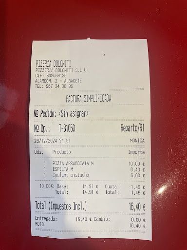 Read moreSe me ha caído un mito. Pizzeria dolomiti, esa Pizzeria de toda la vida, familiar, acogedora, aquella Pizzeria donde parece que cuando estás dentro no ha pasado el tiempo, vivió la época dorada albaceteña dando de comer a esa juventud under de la época. Punto.