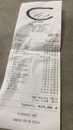 Read moreEstube comiendo el sabado, no lo conocia, ya que no resido el Albacete, estaba en el imaginalia y estaba todo a reventar, por lo que usé google y este fue uno de los restaurantes mas cercanos y vi la calificación y me aventuré, bueno, no me pareció caro, diria que en la media, pero quizas fue el dia, pero nos dieron para ver la carta digital Qr... Y despues de estar un rato eligiendo, cuando vino la camarera, justo lo que pedimos no habia. Y casi pedimos a ojo y bueno, la calidad del queso frito, duro y muy salado, unos pinchos morunos muy resecos y muy hechos, y bueno unos boquerones fritos sencillos pero pasables, el servicio Bien y el precio menos de 20€, mi opinión es que puede ser buen sitio a mejorar algunos detalles,