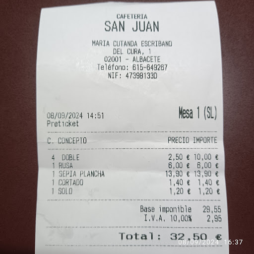 Read moreNos atendió un señor que además de estar con una expresión desagradable, cuando pedimos la cuenta (que costó porque no nos hacía caso) cuando trae el ticket y le decimos que pagamos con tarjeta dijo en voz alta "ala otro viaje más" como si le estuviéramos haciendo la vida imposible, señor usted es camarero y ni tiene la terraza llena, si se hubiera parado a preguntar cuando pedimos la cuenta se podría haber "ahorrado el viaje". Cuando trae el datáfono ya había puesto la cantidad sin mirar el ticket y nos cobró 40 céntimos de más, que parece una tontería y estoy segura de que fue sin querer pero me parece el nivel de dejadez máximo. No vuelvo jamás. Además la cena me sentó fatal, no sé si las patatas que estaban blandas y zurencas o la ensaladilla que parecía llevar hecha...