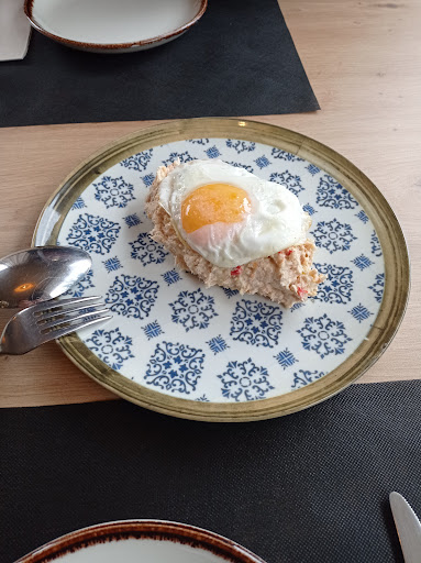 Read moreEl restaurante tiene un diseño minimalista y contemporáneos con esculturas modernas, la estética un 10. Luego fuimos un miércoles sin reservar y nos pusieron una mesa. Pedimos la bebida y nos pusieron un aperitivo de variado de frutos secos. Escogimos menú del día y se podía elegir entre 3 primeros y 3 segundos. El primer plato escogimos lasaña casera y estaba riquísima y los Segundos cada uno uno, y el postre una miloja de pistacho con nata y fresas, espectacular el postre tambn! Es servicio por parte de los camareros espectacular, la comida la sirvieron súper rápido y muy atentos siempre, en especial dar las gracias a Mireya (creo q se llamaba) por lo simpática que fue y porque atendió a otros comensales en inglés, hablando y desenvolviéndose perfectamente. Por último por poner alguna pega, no nos dieron la carta para poder mirar lo q había o un código QR, con lo q pedimos el menú del día pero no sabíamos lo que costaba, ni lo q entraba hasta el final. El precio del menú es de 14€ por persona con primero, segundo, postre y café. Aunque en el menú no entra ni la cerveza sin alcohol ni el acuarios de limón, solo entraba el agua. Un 10 de restaurante muy...