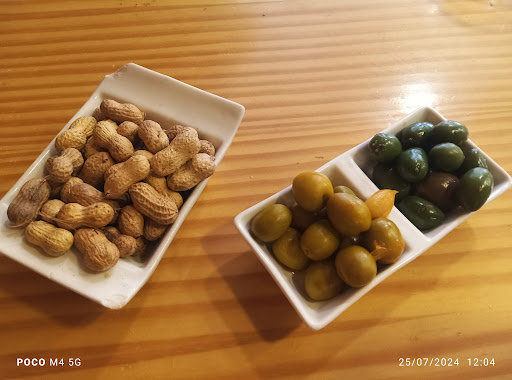 Mientras lo pedimos, trajeron el arreglo de cacahuetes y aceitunas, así como bebida. Muy buen servicio en cocina, el bocadillo salió muy rápido. Qué lleva este bocadillo torrezno brie? Pues lleva: torrezno de Soria, queso brie, cebolla pochada y mayonesa de trufa. Estos ingredientes hacen un equipo perfecto. El torrezno: super crujiente a la vez que sabroso, y sin una gota de aceite. El queso en armonía con el torrezno, te hace disfrutar cada bocado. El pan está pues un sencillo: bien, pero este bocadillo es original y está riquísimo.