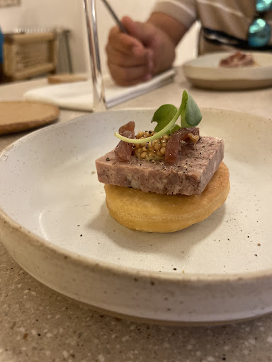 🥂 Aperitivos que abren el apetito con arte: La experiencia comenzó con una tosta de paté frío, delicadamente montada sobre tosta de la zona y un montaje visual impecable. Un bocado elegante y sabrosamente equilibrado.