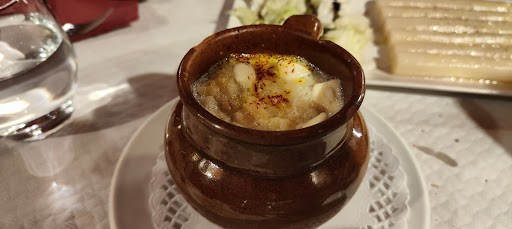 Read moreEn el que está considerado uno de los pueblos más bonitos de España, Albarracín no deja de ser un pueblo pequeño. Su nombre es de origen árabe, algo muy común en esta zona donde el estilo mudéjar se encuentra en muchos rincones. El restaurante es una casa con ese grosor de muros típico y necesario además en lugares con esa climatología, en el centro histórico del pueblo. Con unas mesas bien compuestas y una decoración sencilla y rústica que hacía juego con la oferta de su cocina, tradicional y elaborada con productos de la zona, provocaban un ambiente de lo más hogareño.nos describen los platos de la carta uno a uno y nos dicen cómo los hacen: que ingredientes usan y que es lo que les hace distintos de otras elaboraciones. Es cierto que no es una carta demasiado extensa, pero si con suficiente oferta para encontrar cosas al agrado de todos los comensales. Así que como no podía ser de otra forma, escogemos platos típicos del lugar. Toda la comida la acompañamos con un Ventus un vino del Bajo Aragón que nos encantó y del que haremos la entrada en La Bodega de Baco, como siempre. Toda esta comida, con la botella de vino, y dos cafés nos costó 57 Euros. Un precio buenísimo para la cantidad de comida que nos pusieron. Además, nos gustaría hacer especial mención al pan: una mezcla de pan de coca, chapata, pagès. Un pan de pueblo, pero ligero,...