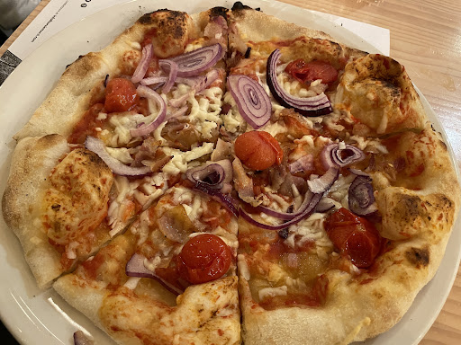 Fuimos allí el sábado 7/01/23. El restaurante se ve decente. era uno de los pocos abiertos en la zona a las 22:00. Pedimos provócala para empezar, que creo que se debe pegar más derretida para poder mojar los palitos de pan, pero tuvimos que cortarla. Como plato principal teníamos una pizza con queso pecorino, que literalmente no encajaba. era demasiado fuerte y mataba los sabores de todos los demás ingredientes. sin mencionar que no estaba derretido. muy raro Pedí una ensalada de burrada y tomates secados al sol (no tomé una foto y la devolví) que venía con calabacín crudo viejo, ¡literalmente 3 piezas de tomate secado al sol del tamaño de la punta de un dedo! y mucho tipo de jamón "spec del Trentino". el skad significaba ser burrata con tomates y era principalmente calabacín y jamón con el bol de burrata. con unos tapones enormes. ¡No comes calabacín crudo! a menos que sea joven. y aun así es repugnante. Sin embargo, la encantadora camarera Ruby, fue súper profesional, observadora y vino a preguntar y cambiar el plato sin problema. Pido una pasta con ragú en su lugar. que estaba bien simplemente muy sencillo. sabía exactamente como tagliatelle con salsa boloñesa. No me sorprendería tener la misma salsa si pido un espagueti a la boloñesa. Pero era tarde, tenía hambre y la camarera hizo lo que pudo, y estaba comestible. Simplemente nada especial. La pizza al otro lado de la calle es mucho mejor, pero no tienen muchas...