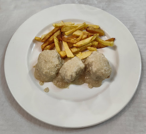 Read moreNada que destacar. En el exterior ningún cartel indicativo en la entrada que lo identifique. En el interior toda la apariencia de un bar, con una simple barra y una puerta que te lleva a un pequeño comedor sin nada de encanto con un televisor "amenizando" la velada. No nos sorprendió ninguno de los 3 platos que probamos. Ensalada de perdiz: Lechuga, zanahoria y remolacha en juliana con perdiz desmenuzada en la parte superior del plato. Nada original. Bacalao al ajo arriero: Dos lomos de bacalao con un top de tomate frito por encima algo resecado al haber pasado por el horno. Solomillo de cerdo "blanco" con foie y cebolla caramelizada: según la chica que nos atendió, el solomillo tenía que ser "blanco" porque el ibérico no se puede cocinar de esa manera. No había presencia de foie y el solomillo tenía una consistencia que no nos gustó demasiado. No pudimos terminar el plato. Ambiente: pedimos cambiar a la mesa del fondo para evitar la presencia del televisor. Gente de la zona comiendo el menú del día principalmente. Atención: muy sobria, amabilidad justa. Resumen: Nada destacable...