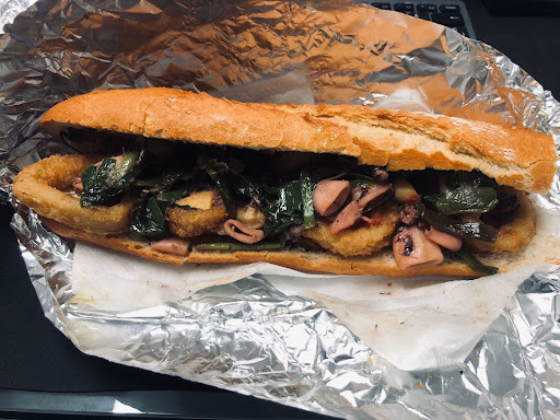 BOCADILLO/S... PLATO/S... COMIDA... CENA... Almuerzo... Dos bocadillos el primero de chipirones... Habas y ajos tiernos... El segundo Especial de la casa (carne de caballo 🐴 con tomate 🍅 seco y huevo 🥚 frito...