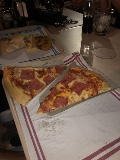 A fast food style pizzeria that also serves burgers, sandwiches, etc. A good place to go with larger groups so you can make the most of the promotions they have (we had the '1 family size pizza + 1 regular size = 23€'). There is no table service so be sure to go inside to order. The terrace is next to a children's playground so it's very...