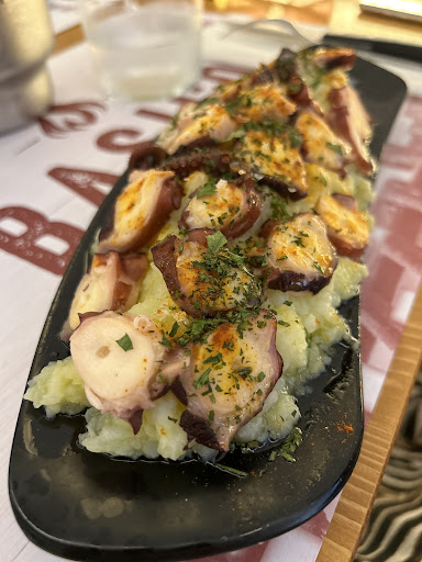 Read moreBASICO Is a beautiful rustic restaurant in the old town of Alcudia A great steak house that offers dry aged meat from both beef and cow with minimal aging of 40+ days. The meat is served for 2 people and weighs just over 1 kg. You can choose different meats from the display cooler located at the entrance of the restaurant. The waiter helps you with your choice. An authentic charcoal grill is on display in the outdoor area. Your steak is weighed at your table for you to see. The service is comfortable and the atmosphere is good, the food is very tasty. God selection of starters along with classic desserts make up the menu and the steaks are absolutely fantastic. We had Carpaccio and fried eggs with potatoes and foie gras on top for starters along with local olives, baquet and ali oli, everything tasted extremely good. The steak was then weighed in front of us with fat and bone and was about 1.3 kg. Baked potatoes and salad came with the steak. The steak was heated up and cooked bleu then it was cut in slices in front of us and we finished roasting the steak medium rare like we wanted it on a hot stone at the table. Lokal red wine went very well with the meat and the aperitif was a dry house white wine witch was very good. We got a charcoal-grilled hamburger and pork roast with a side dish for our children and they were very happy. We ended this wonderful journey by tasting hot chocolate cake, oreo pudding and tiramisu for desserts, each one better than the other. Great experience recommend this place 100% cool environment great food and very good...