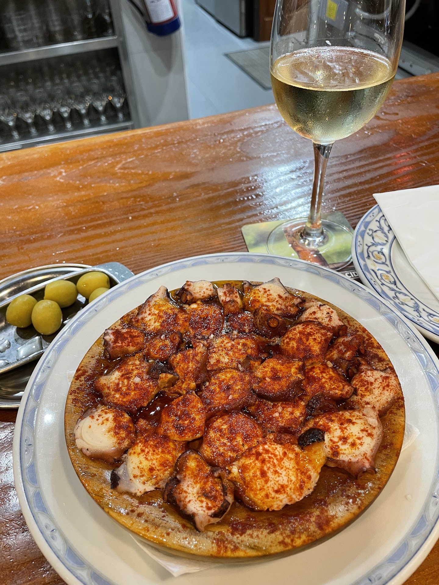 We had a meal for four last night at this restaurant. The restaurant is in the midst of a busy thoroughfare, so not a place to eat if you wish for peace and quiet with your meal. As we waited for our ordered meal a waiter placed a bowl of some 8 prawns in garlic butter on the table, we thought ‘what a nice touch’. When the meals arrived, two sole, one salmon and my own meal of pork ‘cheeks’. The salmon was sent back to be cooked a little more and my wife said her baked potatoe was also undercooked but she did wish to send it back and so ate what she could, both the recipients of the Sole told me that the fish was ‘dry’ and without any taste. Unfortunately, within 15 mins of eating my meal I developed very strong tummy pains and had to spend time in the restaurants toilets. This was followed by both recipients of the sole also having tummy upsets. When we had the bill we were surprised to find that we had been charged 10 € for the prawns which were not ordered, when we queried this and stated that we hadn’t ordered them the waiter told us us that we had eaten them! Fair point, but a little scam that potential customers should be aware of. We would not go back to...