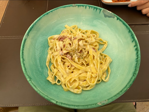 II. The food was disgusting. The patatas bravas was cold, with a tiny portion of 'bravas' sauce. The Spanish omelette was both cold and bland. The cod was unrecognisable when compared with any other cod experience I've had. I thought that 5 tapas for €22 looked like a good deal, but frankly, I wouldn't feed this muck to my dog, and I have had to stop her eating some pretty grim things before. Spaghetti carbonara looked like spaghetti mixed with double cream and some separately cooked bacon.