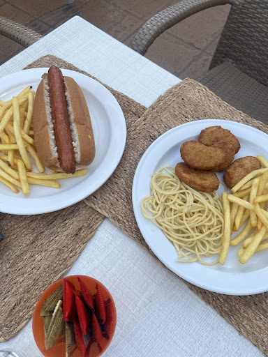 Far too expensive, and poorly cooked food! Me and my wife both had T-bone steak, this came out about 25 minutes after my daughter got her dinner! No thought was given to the child’s meal serving overcooked fish fingers and plane dry boiled potatoes. When it came to our steaks we asked for them medium well, when they came out my wife cut into her’s and it was very rare going on raw, mine was cooked well on one side and raw on the other. My wife sent hers back to be cooked more and when it came back 15 mins later they did not refresh any of the side of the dish so they were cold and hard. The steak was still undercooked so ate very little of it when we asked for the bill we mentioned the steak and then possibly had one of the worst customer experiences of my life, I asked to only pay half for my wife steak as she ate so little but they were adamant we pay full price, so I asked to speak to the manager, the waiter said “he speak no English” came back 10 mins later demanding full payment saying you could have sent the steak back again until it was right, it is only when we started making a scene he broke and knocked 12 euro off the bill. Would...