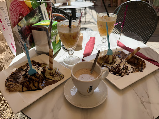 Service is disappointing. We sat down to drink something. Before leaving we wanted an ice cream. The counter still was full of ice cream but when I asked for one the staff said 'we are closing, go to the other side of the street'. I asked for Nutella flavour in particular if they sold it at the other side. I got the answer 'I guess'. They did not have Nutella on the other side... And the staff member that refused to serve me an ice cream, just had to pick up a cone and give me a scoop. I won't be back there, would...