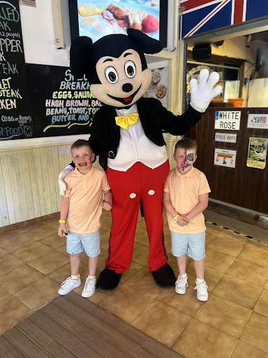 Read moreAmazing food, friendly staff, quick service. Good entertainment in the evening. We stayed in the hotel opposite and for one week and every morning we had a full English breakfast at the white Rose. We then went back for our evening meal and it didn't once disappoint. The food was lush. The staff were lovely and friendly. We enjoyed a parrot show on the Thursday evening. We will definitely be recommending the white Rose to others and we will definitely be back. My boys loved the house Irish burgers. And the pizza's were fresh. The breakfast were amazing good fresh products. Value for money it...