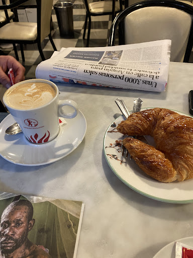 Hemos venido a desayunar y el camarero nos dice que a estas horas no tienen croissants, que ya se han vendido. Media hora más tarde llegan nuestros acompañantes y piden dos croissants a otro camarero y se los sirven sin problemas.