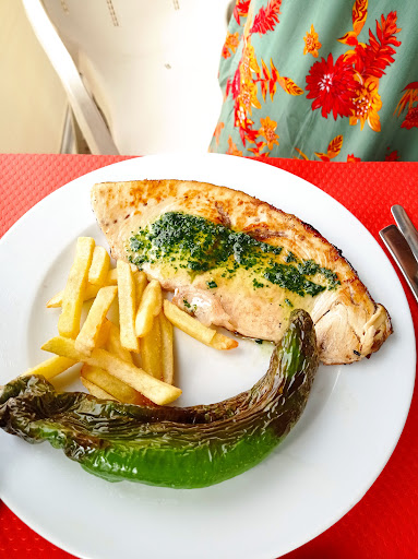 Read moreParamos a comer y pues la experiencia no fue muy agradable, pedimos menú del día, de entrantes pedimos patatas "rellenas", una, una sola pata partida el dos con queso por encima😒. Lo más terrible fue el segundo, pedimos pollo en salsa y churrasco; literal el pollo eran los trozos de hueso del pollo y el cuello 😱, nada de carne, eso no lo deberían servir en un plato, al final nos lo cambiaron por churrasco que muy justita la ración. En teoria, la relación calidad precios mal, 25€ por dos menús con raciones muy justas. Se abona la amabilidad de las camareras y la limpieza...