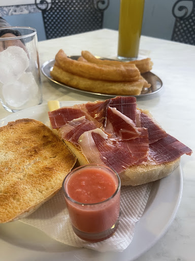 Read moreTostada muy buena y churros muy buenos. La ubicación 8/10, accesible y con aparcamiento de sobra. Tienen muchas cosas pero me faltaba una carta física para verlo todo tranquilamente. En una pizarra en la pared es algo incómodo y no estaba todo. Trato y servicio, en cuanto a mi experiencia, todo bien. No le pongo 5 estrellas porque me ha parecido un poco caro. En Sevilla, San Bernardo, desayuno lo mismo por 3,60€, aquí por 4€. Pero no quiero dejar una sensación negativa, buen sitio y distinto...