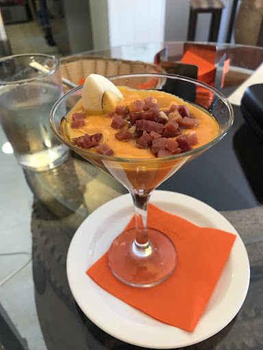 Read moreLlegamos allí por casualidad, ya que en principio nos habíamos sentado en el bar de al lado y nos habían dicho que a las 11 ya no estaban sirviendo cenas -ayer muchísima gente estaba cenando fuera, semana santa... -. Total, que mi pareja y yo nos sentamos en la terraza de la placita para pedir en este sitio. Tranquilitos, pegados a la baranda y con bonitas vistas. La verdad que pienso repetir porque hay platos que DEBO probar de este sitio. Emplatado de 10,hasta la vajilla es bonita. Pedimos una ensaladilla de brócoli que estaba... Mmmmm... Sin palabras. Un 10. También chocos y croquetas de pescado con una salsita abajo... Es un espectáculo cómo las emplatan. Para terminar unas chuletitas de cordero con patatas caseras que estaban deliciosas. Estoy ya esperando sacar una excusa para...