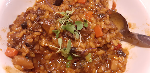 Read moreComimos 6 en la parte de dentro ya que la carta de dentro tiene más variedad que la de fuera y en verano a medio día, a pesar de que hace sombra, comer en la terraza me parece pasar un mal rato innecesario (ojo, que somos amantes de las terrazas, pero creo que en verano hasta por la tarde/noche, no es plan). La parte de dentro es más restaurante, buena presentación, recetas elaboradas etc, pero con recetas de asador y cocina tradicional. La parte de terraza es totalmente distinta, más tipo bar, con tapas y platos menos elaborados, vasos de plástico, etc. Pedimos 1kg de lomo alto (exquisita la carne para el precio que tiene, 40€, croquetas, arroz meloso, buenísimo por cierto, con muchísimo sabor a pesar de ser de verduras y buen punto del arroz, huevos estrellados, secreto con una salsa echa a partir de soja. Toda la comida buenisima, todo lo pusimos para compartir y quedamos totalmente saciados, no pidiendo ni siquiera postre. Todo con dos rondas de bebidas y cafés se quedó en 124€. Para la calidad de la comida, el trato y el entorno, hace que sea un sitio más que recomendable. Volveré sin duda para probar asados y sobre todo por la noche para disfrutar...