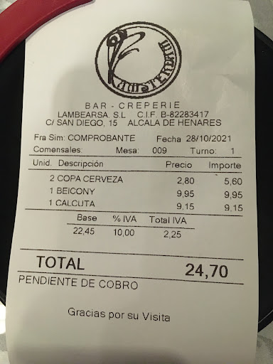 Buen restaurante para merendar o cenar unos ricos creps. Hemos ido en varias ocasiones, la última fue la semana pasada para cenar y siempre hay un ambiente tranquilo, acogedor y nunca está tan lleno como la calle Mayor/Libreros. Tienen una terraza interior bastante amplia y chula con un nuevo techado aunque en estas fechas ya haría falta poner unas pocas estufas para cenad a gusto, así que el último día estuvimos dentro. La música es agradable y no está alta (ambas cosas se agradecen mucho). Tanto los creps dulces como salados están muy ricos, los primeros rondan los 4-6 euros y los salados 8-10 euros. Mi preferido de los dulces es el de chocolate, nata y almendras y de los salados me gusta el beicony, el calcuta y el de salmón. Tienen buen tamaño y están bien cargados de ingredientes, con uno por persona se cena de lujo. La copa de tercio de cerveza (Estrella Galicia) tiene el precio “estándar” de la zona centro de Alcalá (2,80 €); con la bebida siempre ponen unas aceitunas y patatas chips. Repetiremos más veces porque nos gusta bastante y, por supuesto, lo...