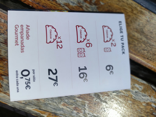 Read moreLas empanadas están muy buenas, cogimos un pack de 6 + 2 bebidas y nos salió a 16€ (si coges empanadas gourmet son 0'75€ más por cada una). El precio es algo alto a mi parecer, por ese motivo le pongo 4 estrellas. La atención estuvo bien, sin nada que destacar en ese sentido.