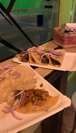 Todos los días varia el sabor lo cual esta bien pero el problema viene a la hora de elegir. Si no conoces o no entiendes el sabor que hay a la carta, el dueño y único empleado te trata con soberbia, no es capaz de explicarte los sabores porque el supone que tu lo sabes. Si le preguntas de que son las salsas te dirán que de muchos sabores, y que todas pican pero no quiere perder su tiempo explicándote. "ay de ti si vas solo" Si llegas a ir solo , el lo único que te hablara en todo tu tiempo de estancia es de lo bien que le va y de como ha vendido todo(aunque tu no quieras escuchar o hablar), que su taquería es lo mejor y que no le rinde cuentas a nadie. Cree que tiene el mejor sitio de tacos del mundo y se vanagloria con eso. En dos oportunidades he ido y he terminado o con acidez o con diarrea porque si, se nota que lo que compra de carne, son restos de la carnicería, casquería, y demás. Puras piezas de la mas baja calidad para el sacar el mejor provecho, nunca he visto algo que le pueda identificar bien sea de carne o pollo(excepto cuando son piezas con mucha grasa como la panceta). El no cocina ahí , todo lo trae hecho y no se muestra nada de como lo tiene guardado.