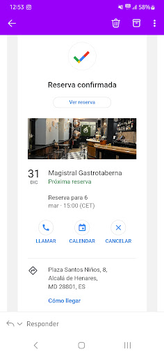 Read moreHicimos reserva a las 15:00, CONFIRMADA el 5 de diciembre (adjunto foto de ello) y el 17 nos la cambian a las 15:30. Tras hablarlo y preguntar el porqué de ese cambio sin explicación, se me dice que era un error informático en la reserva y que hay doble turno, que hasta las 15:30 no es, pero ME LLAMAN y me dicen que no me preocupe, que era un error de ellos y que a las 15:00 tendríamos nuestra mesa, aun diciendo que no pasaba nada e íbamos a y media, se insiste que a en punto la íbamos a tener porque no querían molestarnos y no era culpa nuestra ese error. Nos presentamos a las 15:00 y resulta que varios camareros nos dicen que lo sienten pero que no, que es a y media por el doble turno, aun explicando la situación y diciendo el propio camarero que nos llamó por teléfono que él nos había dicho lo de las 15:00. Desde ahí se nos atiende con desgana encima de tener que esperar la media hora. Los platos nos los sacaron todos de golpe y tuvimos que pedir que se aguantasen, porque no es normal tener que comer platos fríos por querer sacarnos todo a la vez sin hacer pases. Después hacemos la digestión entre platos, porque tardan lo que no está escrito en sacarlos y sin tener más mesas que la nuestra y otra. Con la carne que la pedimos al punto y vino cruda, tuvimos que pedir que se pasase más y tardó otra vida. Para ella, vino el camarero "simpático" (quien llevaba desde que entramos bebiendo cerveza "a escondidas" en la barra) a cambiar los cubiertos por lo "profesional" (dicho por él mismo 3 veces lo de "profesional"), poniendo un cuchillo "de carne" que no cortaba ni el papel y sin llevarse los cubiertos antiguos ni los platos... con un servicio tan "profesional" que presumía con tono burlesco... Para la carta de postres, 20 minutos esperando que volviesen y buscando mirada y llamando para que se acercasen, por lo que evidentemente ya no pedimos nada más que la cuenta. Las mesas estan tan pegadas entre sí que se hace complicado hablar sin gritar, la comida es escasa y sin nada a destacar. Solo se salvó el servicio de uno de los camareros que nos venía a mesa, que fue el...