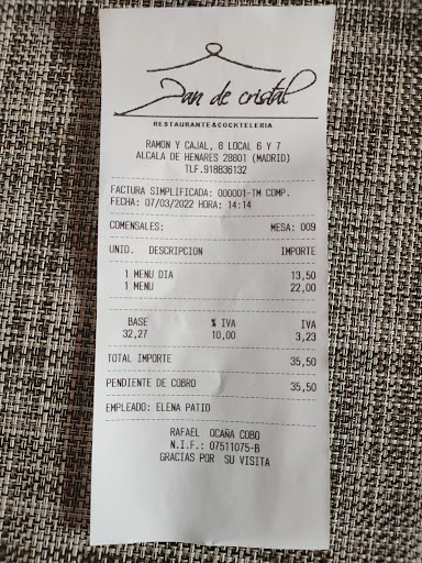 Read moreBuscando con mi pareja, el pasado Martes 20 de Junio, un buen menú entre varios restaurantes en Alcalá de Henares, nos topamos con éste que tenía buena pinta tanto el restaurante como el menú del día Primero- camarera muy amable y dispuesta pero sobrepasada, no se puede tener solo un camarero para 14 mesas y 36 comensales, no da buen servicio, ni ella ni la cocina. Segundo- Nos engañaron con el "MENU DEL DIA" (le hice foto) Primer plato a elegir + Segundo plato a elegir + bebida y postre o café(que aunque no lo pone, nos informo la camarera qué estaba incluido, no así de lo siguiente) 14€ ó segundo plato especial por 2,5€ más ö Arroz con Bogavante como "plato único" por 18€ Bien, elegimos el plato único (que en carta estaba a 20€) para probar, imaginando que la cantidad sería inferior. Nos gusto la cantidad y calidad, pero pedimos el postre y también café, y pedimos la cuenta y "para nuestra sorpresa, nos cobraban el pan, las bebidas y el café, y el postre aparte, "no incluido en el "menú del día"" según la camarera, sin avisarlo y dando a engaño en la hoja que según foto adjunto, señores, si no es así, NO se pone en el menú del día¡ porque se entiende que se sustituyen los dos platos por un "único" pero sigue en el menú con el resto de pan, bebida y postre ó café. Nos sentimos engañados y mal atendidos aunque no por culpa de la chica, si no por falta de personal. No...