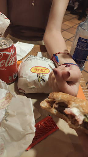 "una hamburguesa", sin especificar cual ni nada, escogí una pinky doble, la chica pasó mi tarjeta (6'50€)
