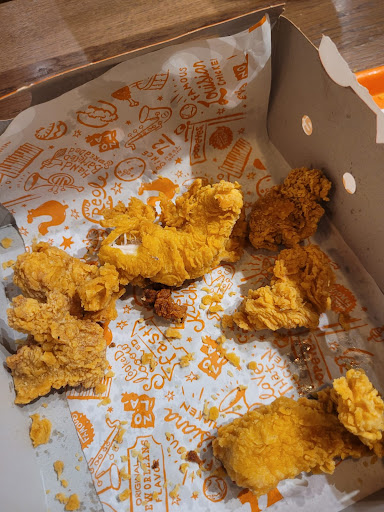Read moreUn servicio pésimo. La encargada (creo recordar que se llamaba Emily). Cometió el error de darnos el pedido de otro cliente. Pedimos las piezas picantes, ya habíamos empezado a comer y nos dimos cuenta que no picaban. Pero decidimos no decir nada y dejarlo pasar. Cuando estábamos en la mesa comiendo, se acercó a decirnos que ese no era nuestro pedido, la dijimos que no pasaba nada que por nuestra parte lo dejábamos pasar. Se fue enfadada y con mal gesto aun siendo ella, la que cometió el error, vimos que nos faltaban unos aros de cebolla, cuando nos acercamos a pedírselos nos dijo no os lo voy a dar por que las piezas que os he dado son mas caras que las que habéis pedido. ¡¿Cómo?! ¿Que tu cometes el error y me hablas así? Que está pagado, no me estás regalando nada. La dimos sus piezas, habíamos mordido varias de ellas por qué eramos 4 personas, las dejo en una mesa tras la barra, nos dieron nuestras piezas picantes y nuestros aros de cebolla. No tiraron las piezas que la devolvimos, se las dieron a otra pareja la cual se dió cuenta por qué decían hay algunas frías y otras queman... Y fueron a protestar. No volveremos por el mal servicio y el asco que nos dio el ver cómo le daban las piezas que no estaban mordidas por nosotros a otra persona. Que no harán, cuando no estamos delante. Todo esto ocurrió delante de la responsable del local que estaba en una mesa con el ordenador y no se molestó en decir nada. La encargada, esa tal Emily, no paraba de echarle la culpa a otra compañera y fue ella la que nos preparó el pedido. Una trepa de...