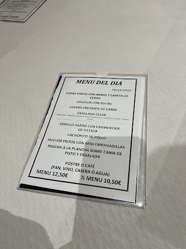 Read moreCuando cargo por esta zona, intento venir a comer aquí. Cada día me sorprende más. Le he dicho a la persona que me ha atendido, que dudaba entre 2 segundos y después de recomendarme uno, me ha dicho que si no me gustaba, me lo cambiaba sin problema. Después me ha dicho que si quería probar un arroz de matanza que había entre los primeros y me ha traído una ración que ya me ha hecho dudar entre éste y las lentejas que había pedido. He de decir que la comida parece a la de tu madre, que siembre es la mejor y los platos son muy generosos en cantidad... Siempre que...