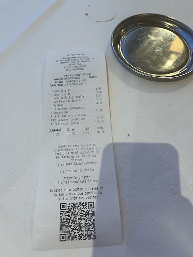 Read moreFui con mi mujer, la tagliatela siempre ha sido un referente de calidad. En Rivas siempre recibimos un trato muy agradable y atento. Entramos con Ilusión y ganas de probar la pasta con foie y trufa.