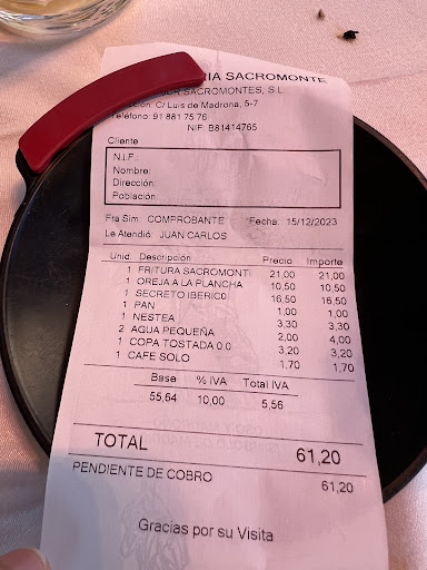Precio total en la cuenta , 42 eurazos , un robo total para tener camareros sin idea de hostelería y con un servicio sin orden ni mando , a lo loco , NADA ACONSEJABLE A NO SER QUE VAYAS A COMER UN BOCADILLO !!!