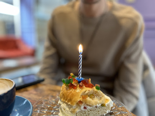 Read moreDescubrimos este sitio hace un par de meses gracias a la pizarrita que ponen en calle Libreros y menuda maravilla, ¡ya hemos ido 4 o 5 veces! Las terrazas (tienen dos, una a cada lado del local) son muy acogedoras, tienen bastantes mesas pero espaciadas. Actualizo con los nuevos precios entre paréntesis, ya no hay “ofertas para merendar”: café con rollito de canela 3,20 € (ahora 4,20 €), son los mejores canel rolls de toda Alcalá (y he probado unos cuantos), esta tarde sin ir más lejos he pasado nuevamente a por uno para llevarme de camino a casa. El café más porción de tarta sale por 4,90 € (ahora 5,70 €); las tartas están INCREÍBLES, todas las hacen ellos; por ahora hemos probado la de limón, tres leches, muerte por chocolate y brownie, y soy incapaz de decir cuál me gusta más. También tienen de manzana, zanahoria y Guinness. Volveremos a probarlas todas y en cuanto llegue el otoño pasaremos a ese saloncito interior que tienen decorado al más puro estilo Central Perk, entre eso y los tazones XXL, como fan de Friends que soy, me han ganado al 200 % (el 150 % ya lo tenían simplemente con las tartas jajaja). Nada que decir de la atención prestada por los dueños: ambos son superamables y cordiales, da gusto que te atiendan siempre con una sonrisa, ¡se nota que les encanta su trabajo!