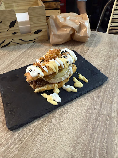 Read moreUn sitio con mucho encanto, ubicado en la antigua tasca de la Casa del Pueblo, ahora reconvertida en un acogedor local donde se respira buen ambiente y mejor cocina. Probamos las croquetas de kebab, que nos sorprendieron gratamente, unas puntillitas fritas en su punto justo de crujiente y sabor, y una original tosta de torta de Inés Rosales con salmón que combina a la perfección lo dulce y lo salado. Como detalle de la casa, nos sirvieron un delicioso guiso de arroz que redondeó una experiencia culinaria impecable. Un lugar para repetir sin duda. ¡Muy...