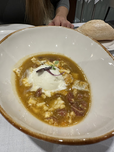 Read moreBonito hotel dentro del maravillosos pueblo albaceteño de Alcalá del Júcar, estuvimos comiendo en su restaurante Bar Eliá, éramos tres amigas y un niño pequeño. El servicio y atención desde el minuto uno fue estupendo. Nos atendió Lucía, que amablemente se presentó al pequeño comensal y le hizo participe de la elección de su menú, un precioso gesto que hizo que el pequeño se sintiese como en casa. Nos recomendó siempre que le pedíamos alguna sugerencia y todo ello con una sonrisa en la cara. Los platos que nos sirvieron estaban muy ricos con contrastes que los hacían únicos y especiales. Probamos el ceviche calado de corvina, tartar de atún rojo con quenelle de wasabi y huevos rotos (muy recomendable cualquiera de los dos entrantes, aunque yo me quedo con el tartar de atún), gazpachos manchegos con caza (para mi gusto demasiado especiados y los trozos de torta muy grandes, pero eso va en gustos, la verdad que estaban muy ricos), lascas de pluma ibérica a la brasa con padrón (riquísimo y en su punto) y de postres, tarta de queso artesana, sopa de chocolate blanco y muerte por chocolate (espectacular). Seguro...