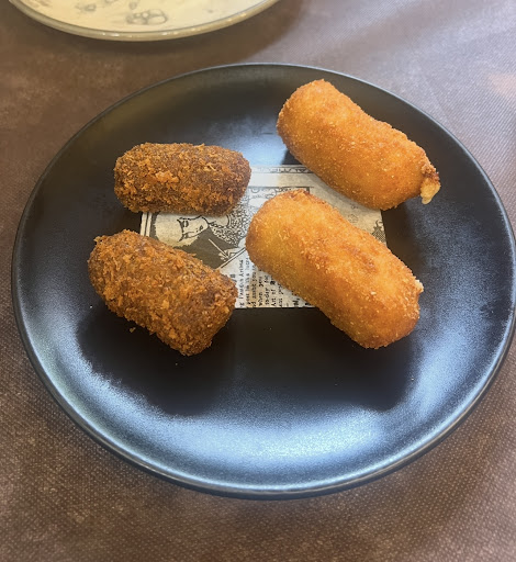 Reservamos con antelación con vistas a pedir el menú de mediodía que habíamos visto en internet, queríamos el arroz al horno que para nuestra decepción al llegar allí, no aparecía en el menú. Después de indagar en las reseñas y fotos, vimos que algunos platos no estaban en la carta, como el morro. Desconozco si el local ha modificado su carta o alguna persona ha subido las reseñas en el lugar equivocado, ya que en la enorme carta de fuera del local tampoco aparecía y la reseña tenía solo 5 meses. Dicho esto, pedimos sugerencias al camarero, muy amable y simpático y prácticamente fuimos con todas las que nos dio, GRAN ACIERTO. Las croquetas, ambas muy buenas. Quizás no son nada del otro mundo ya que he probado muchísimas a lo largo de mi vida, pero sin duda no decepcionan. 7.5 ⭐️ La oreja, recomendación del camarero. Sin duda muy buena, no soy nada partidario de este plato ya que no me gusta el cartílago cuando se nota. Aparte de tener muy poco cartílago, estaba que se derretía y con un intenso sabor a brasa. Gran sorpresa positiva. 9⭐️ Las cocochas, este plato estaba muy bueno, tierno, jugoso y sabroso. Para mi gusto la cebolla caramelizada le da un toque dulce que no le favorece. Creo que con un pequeño toque de sal en escamas y lima estarían brutales. No por ello dejaron de gustarnos, también recomendación del camarero. 7.5⭐️ El abanico a la brasa, llegado a este punto mi estómago estaba ya algo saturado y fue dificilísimo disfrutarlo, pese a todo estaba muy bueno, tierno y con unas patatas espectaculares, quizás eché en falta un sabor un poco más intenso a tostado en la brasa, pero muy recomendable. 8⭐️