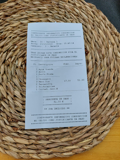 Read more¡¡Por dónde empezar!! Quiero pensar que tuvimos un mal día, pero después de leer algunas reseñas a posteriori, creo que no. Para empezar, contextualizo, éramos tres comensales, y dos de ellas con problemas digestivos, así que evitamos gluten y lactosa. Nos sentamos en la terraza, es bonita y hacía buen día. Pedimos el menú de 17€, un poco caro, pero la realidad de la zona es parecida. El menú pedimos: una ensalada (básica), de primero un arroz meloso con parmesano (que claramente no era parmesano)y unos macarrones (normales). Después churrasco, regular, carne un poco dura. Se llenó la terraza de gente, y ya el servicio empezó a ser muy lento y desorganizado, tanto para retirarnos los platos como para tomar nota de postres. El tema postres, pedimos opciones sin gluten y sin lactosa, y nos trajeron una panacotta, que al verla solicitamos que la retiraran, la cocinera nos dijo que efectivamente, lleva nata, que no tenían nada sin gluten y sin lactosa (ni siquiera fruta) y que nos la descontarían de la cuenta. Pedimos café e infusión, lo segundo no llegó nunca, aunque lo pedimos varias veces. La cuenta tardó también mucho en llegar, con todo incluido, cuando le dijimos al camarero lo que nos había dicho la compañera, que nos descontarían las panacottas, nos dijo que no, que iba dentro y que no podía hacer nada. ¡total, una experiencia nefasta y cara! Puedo entender que los menús son cerrados, pero si estas dando un servicio lento, unos clientes no están disfrutando bien del servicio y encima no pueden consumir el total de lo que ofreces, qué menos que tener una consideración, para que al menos quieran volver. Por último, sólo había 4 camareros para una gran cantidad de clientes, la cocinera nos dijo que lo sentía, que le habían fallado justo 2, pero por lo leído ahora, me da a mi que es muy normal que tengan poco personal.