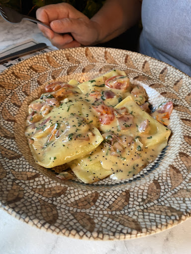 Todo fantástico. Llevábamos tiempo queriendo probar este restaurante y por fin fuimos. Nos atendieron sin tener reserva. El restaurante estaba concurrido pero eso no hacía que hubiera ruido. Nos atendieron rápido trayéndonos unas aceitunas y unos colines picantes muy ricos y nos preguntaron si había alguien con intolerancias alimenticias, lo cuál es muy de agradecer ya que en la mayoría de los sitios no lo preguntan y ciertamente te puedes despistar y no avisar de ello o no verlo bien según qué plato. De beber pedimos agua del tiempo, agua con gas y vino Ribera. No tienen Ribera pero nos ofrecieron un vino italiano que se le pareciera. Al traer el agua nos trajeron una botella grande de agua del grifo y al pedirla mineral nos dejaron la primera botella de agua en la mesa, lo cuál me pareció un detalle. La decoración es llamativa y tienen una zona rosa apartada imagino que para eventos especiales. También tienen una acogedora terraza fuera. Pedimos lasaña de boletus de pasta al huevo con trufa y boletus, lasaña clásica de pasta al huevo con espinaca, rellena de ragú y raviolis rellenos de queso Taleggio y nueces con pesto rojo de tomate seco, piñones y paprika. Y todo estaba ESPECTACULAR. Los tres somos amantes y expertos en pasta y nos hemos quedado muy muy contentos y satisfechos con la elección. Este sitio es muy recomendable para los que disfrutan de comer una buena pasta. Los sabores están muy bien combinados y los platos están elaborados al detalle, disfrutas de una rica combinación de sabores sin ser pesada ni cargante. De postre pedimos tarta de queso que es muy cremosa y no excesivamente dulce. La atención ha sido muy buena y rápida en todo momento. Quiero destacar la carta digital que tienen que es muy cómoda ya que te vienen muy bien explicados los platos con sus fotos y cuando entras dentro te aparecen los...