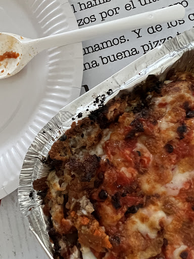 -La pizza sale 5 min después. Está rica, al menos.