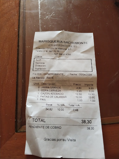 Precio total en la cuenta , 42 eurazos , un robo total para tener camareros sin idea de hostelería y con un servicio sin orden ni mando , a lo loco , NADA ACONSEJABLE A NO SER QUE VAYAS A COMER UN BOCADILLO !!!