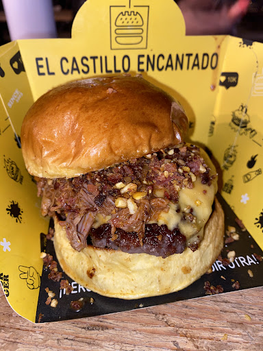 La Navideña (Puesto de Alcantarilla: El Castillo Encantado) Calificación: 10/10 Para mí, fue la mejor del festival. Su increíble combinación de ingredientes marcó la diferencia. La carne de chuletón estuvo perfecta, ya que pedimos que nos la hicieran bien hecha, y cumplieron a la perfección. El costillar de cerdo deshilachado, marinado con salsa BBQ, le dio un sabor espectacular, y el toque de bacon bits y la lluvia de kikos fue un gran acierto, añadiendo textura y originalidad. En definitiva, se trató de una hamburguesa muy completa y equilibrada, que merece totalmente su calificación.