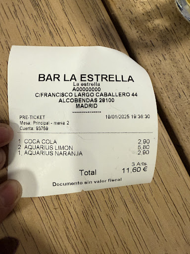 Read moreDecepcionante. Le pedimos un pincho y nos dice que solo tiene aceitunas. Entran otros clientes y les pone un pincho de tortilla. Íbamos pensando que los niños comieran algo y nos tuvimos que ir como entramos. Nada recomendable. No recomiendo nada entrar. Además super caro 4...