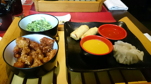 Read moreVaya castaña de menú! Conozco el restaurante hermano que tienen en el barrio de Salamanca en el que por 70 €/persona puedes tener una buena cena de japonés, que es lo suyo. Se ve que en La Moraleja tienen detectado un público diferente de oficinistas que demandan un menú con un precio mucho más bajo, y ni cortos ni perezosos lo resuelven recibiéndote a porta gayola con unos rollitos y un pollo rebozado de chino de barrio malo, y con eso te van llenando la tripacha. Luego, y para asegurar que nadie se vaya con hambre hemos tomado unos california rolls grasientos y un tataki de salmón con una salsa saciante por encima: vaya tela! Por si fuera poco éramos un grupo de 8 (con cinco chicas) y al camarero le hemos preguntado sí deberíamos compartir los menús ya que las chicas comían menos. Muy profesional nos ha dicho que las cantidades eran justitas... y zasca! ha sobrado comida por un tubo. Al marcharnos se lo he recriminado al camarero y todavía intentaba convencerme el tío, con un par! Llevo toda la tarde bebiendo agua a ver si baja la pelota, y escribo esta reseña sentado en el trono para ver si por fin doy por terminado este penoso episodio. PS: le ruego al dueño que no replique a este comentario con buenas palabras porque todavía me voy a...