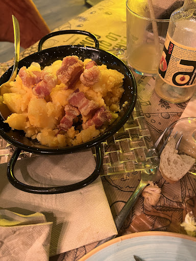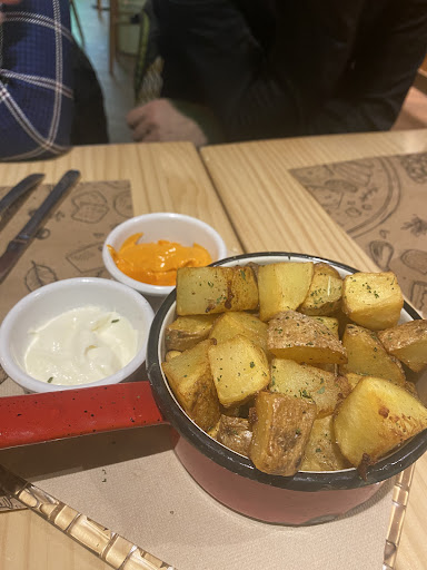 Habíamos estado en dos ocasiones anteriores, una tomando algo (en la que nos gastamos mucho menos) y otra cenando (en la que nos gastamos mucho más), ambas en la terraza, y la experiencia había sido aceptable, así que decidimos volver el sábado por la noche. Como hacía frío, preguntamos si tenían sitio dentro para cuatro personas y nos ofrecieron una mesa sin preguntarnos si íbamos a cenar o simplemente queríamos tomar algo. Una de las personas que nos iba acompañar finalmente no iba a llegar, así que los otros tres decidimos picar algo para acompañar las bebidas y pedimos unas bravas y unos crujientes de brie. Las palabras textuales del camarero (grande, rapado y con perilla) a la chica que estaba en la barra a dos metros de nosotros y en voz alta fueron: "Ocupan una mesa para unas putas bravas". Como nosotros sí somos personas educadas, no nos levantamos cuando le oímos, pero desde luego es un sitio al que no pensamos volver. Las dos mesas que teníamos a ambos lados estuvieron vacías la mayor parte del tiempo que estuvimos allí, por lo que entiendo que el problema no era falta de espacio para gente que pudiera acudir a cenar "más fuerte". Si de entrada fueran claros y te dijeran que prefieren un consumo mínimo de x por persona, como clientes no tendríamos que aguantar luego la mala educación y poca profesionalidad de este "señor", pero debe ser que prefieren tener el local vacío a ganar 45€ más una noche (más lo que pudiéramos haber gastado en ocasiones posteriores si no hubiéramos tenido esta...