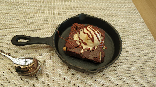 Read moreEspectacular comida, gran ambiente y servicio suprer amable. Local con terraza cubierta y otra descubierta, además de un gran salón. La carta sencilla, a elegir entre un menú de dos platos y postre, o un menú degustación más extenso. Primero sorprende por la variedad de opciones que presentan, desde comida con toques asiáticos, mexicanos, clásicos, asador, la verdad es que no falta de nada, aunque con toque propio en todo. Nosotros aunque nos gustaban muchos de los platos, elegimos a compartir los entrantes, ensaladilla, falso niguiri, tortitas de tataki de atún y tempura de verduras. La verdad es que a cuál mejor en su justa medida para probarlos todos y hecho con mucha originalidad y cuidado en la cocina. Como principales pedimos costillas, en su punto de asado, jugosas y con un gran sabor. Lasaña de carne, un clásico pero en su justa proporcion de carne y bechamel. Y el sándwich de pastrami, excelente combinación entre la ternura del fiambre, la acidez de los encurtidos, la salsa, y el punto final del crujiente de pan de semillas tostado con mantequilla, de los mejores que nunca he probado. Para terminar de postres también una gran variedad, elegimos el brownie, que es una delicia para los chocolateros, la tarta banoffe, riquísima combinación de plátano, dulce de leche y nata y por último la tarta de Lima, muy refrescante y delicada. Pues ese mismo, una estupenda comida, variada, en una cómoda terraza y con un servicio muy amable y rápido. El precio está genial unos 15-16 € con bebida y café. Muy recomendable la...